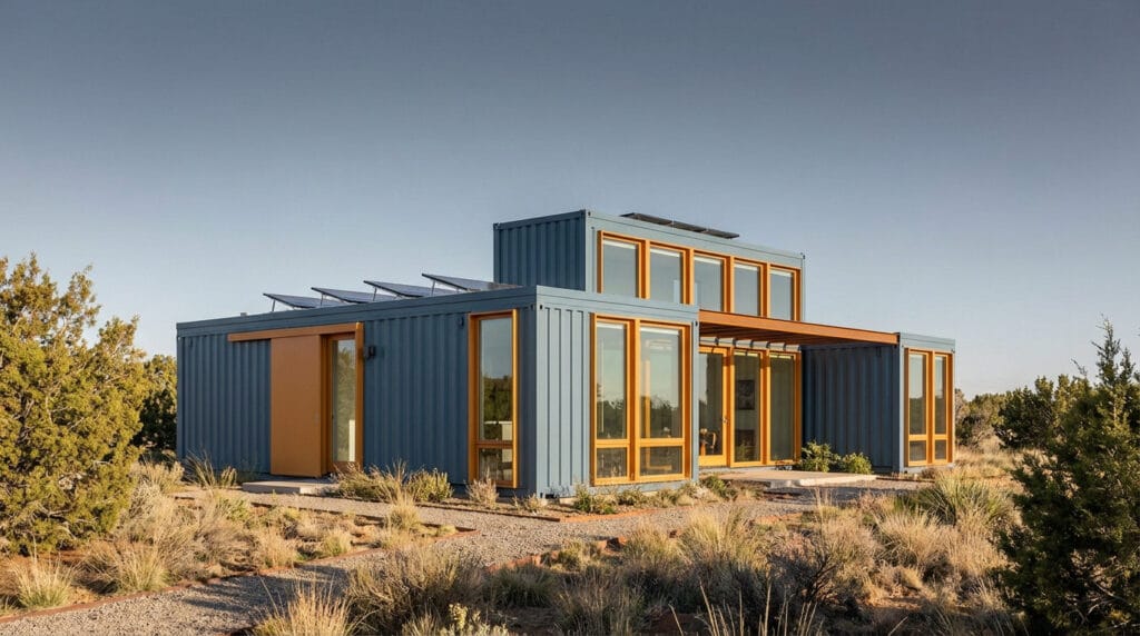 Maison container 100m2 : configurez 4 modules, budget réel et RE2020. Maîtrisez l’isolation et la structure pour un habitat conforme.